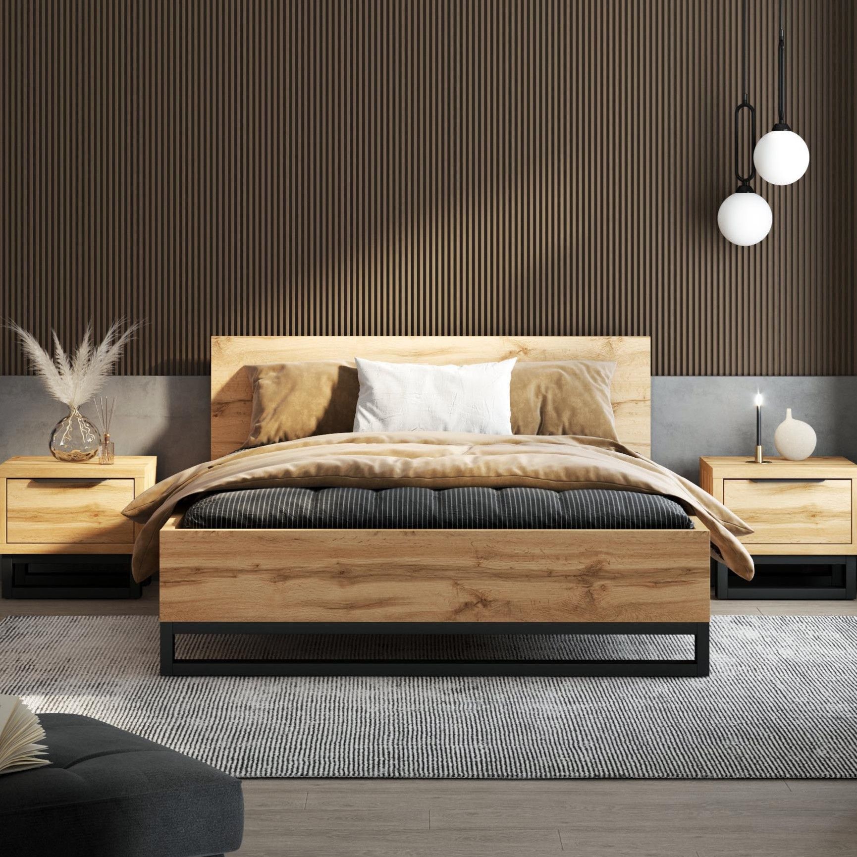 Apportez de la nouveauté dans votre intérieur grâce à cette armoire HAMETTE au look vintage tendance qui fait un carton. Son chêne wotan combiné aux petites touches de noirs donne un magnifique rendu. L'espace de stockage présent est très intéressant grâce aux 6 étagères et à la barre penderie. Les deux tiroirs du bas complètent bien l'ensemble. Le tout est fabriqué en panneaux de particules et vous permettra d'obtenir un ensemble solide et stable! Et combinez les éléments de la collection HAMETTE ensemble afin de vous faire un ensemble harmonieux et tendance!