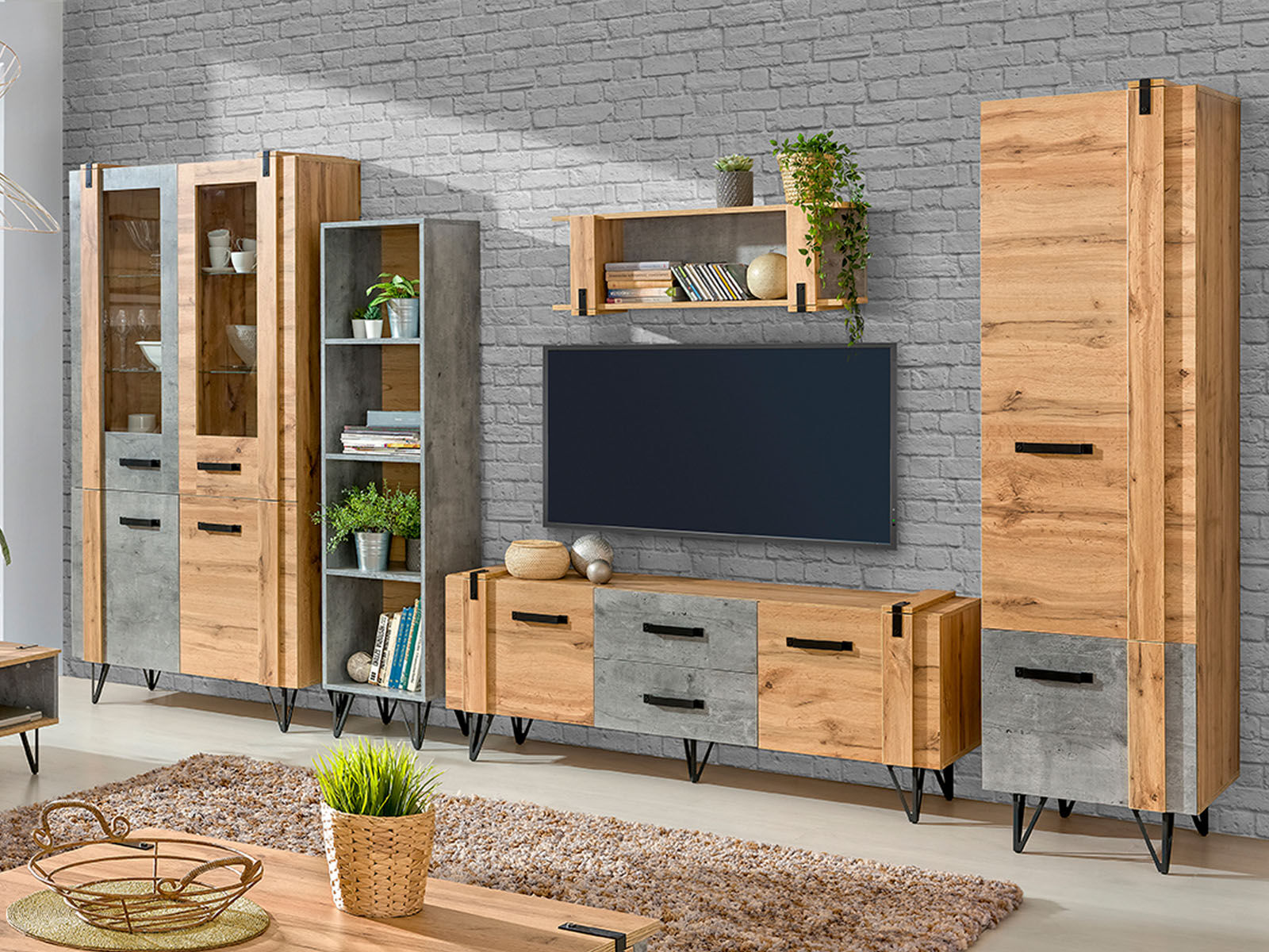 Armoire MILPO 2 portes 2 tiroirs chêne wotan/béton
