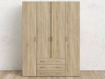 À la recherche d'une armoire simple et efficace ? Alors cette armoire de la collection SPACIO est faite pour vous! Dotée de 4 portes et de 3 tiroirs, son espace de stockage est hyper pratique et fonctionnel. Derrière les deux plus petites portes, vous y trouverez une niche et une barre penderie. Sur les côtés, vous avez 10 espaces de rangement au total. Vos habits trouveront une parfaite place dans cette armoire. De fabrication scandinave, ce meuble est fabriqué via des panneaux de particules de haute qualité. N'hésitez pas à découvrir les autres meubles de la collection SPACIO afin de vous créer un ensemble harmonieux et chaleureux!