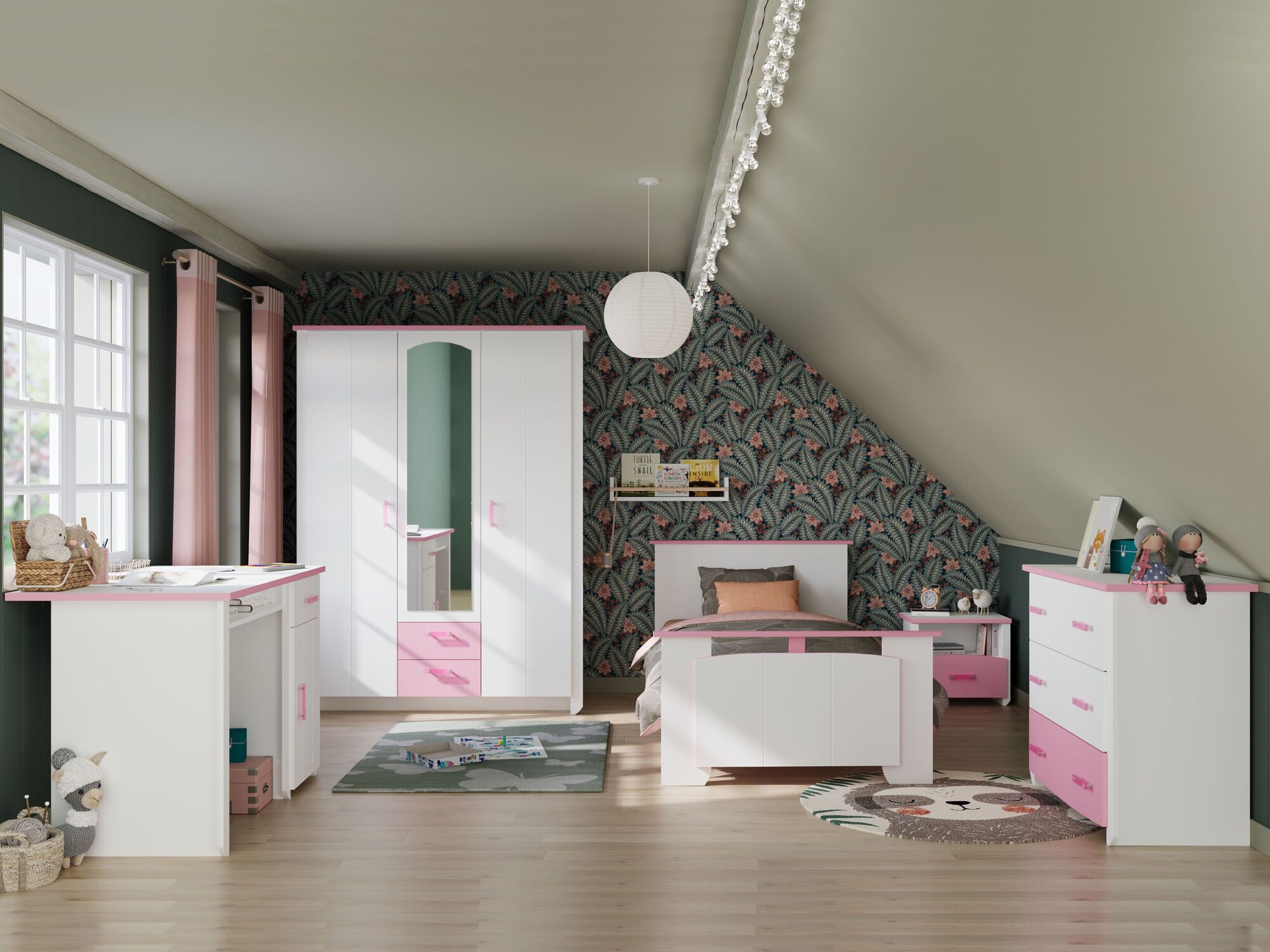 Chambre complète ROBINSON 90x200 cm blanc/rose 01