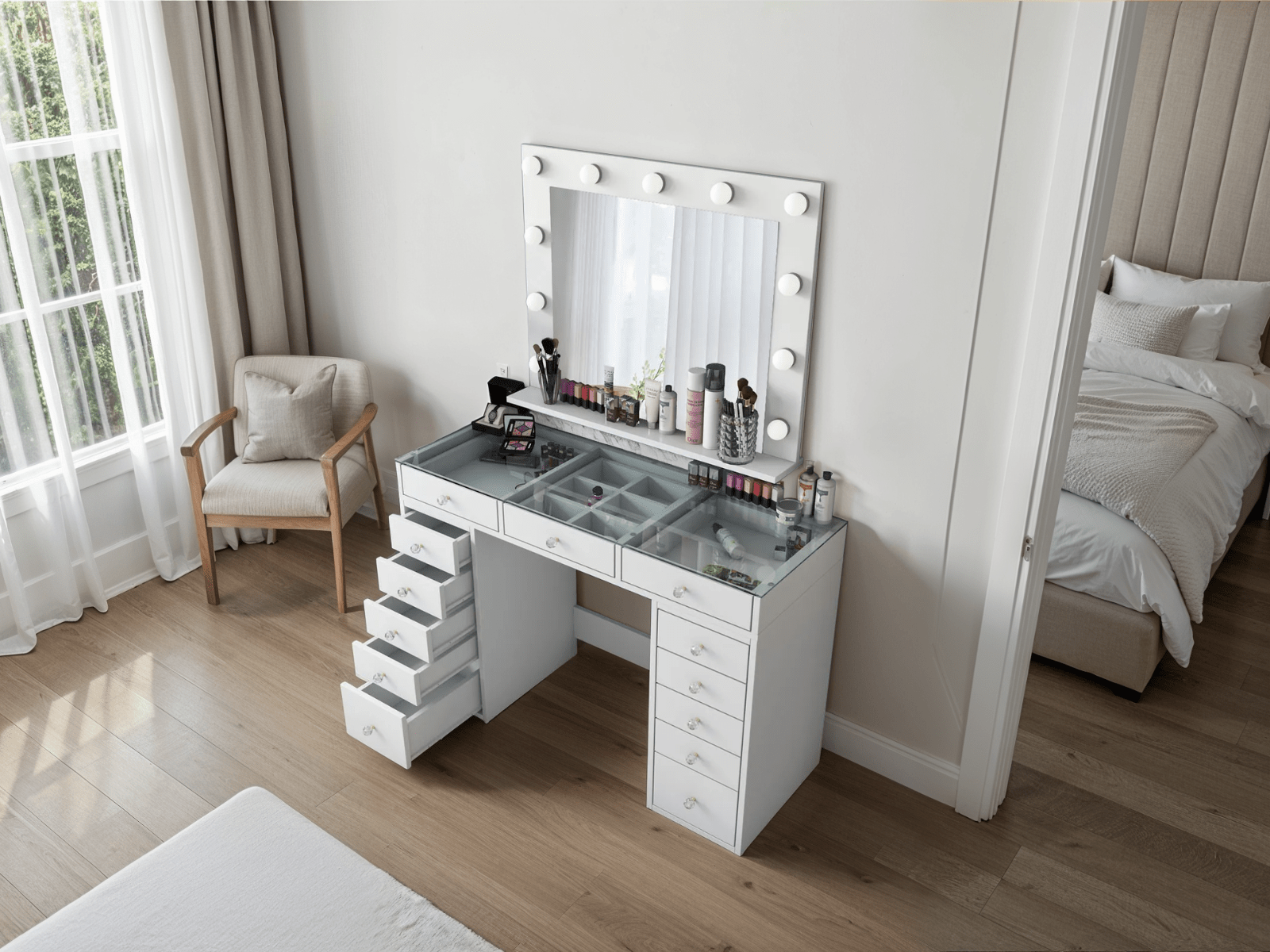 Coiffeuse JESSIE DELUXE 7 tiroirs blanc