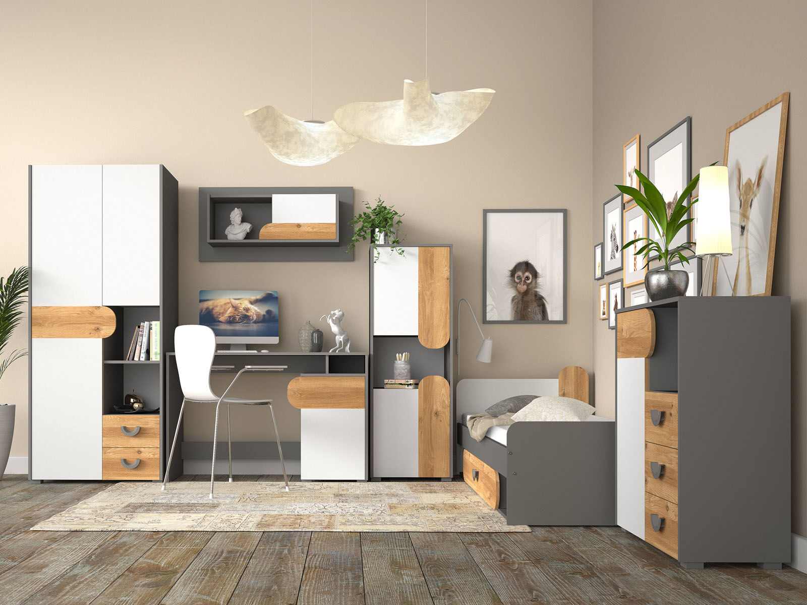 Commode CARINO 1 porte 3 tiroirs blanc/chêne nash