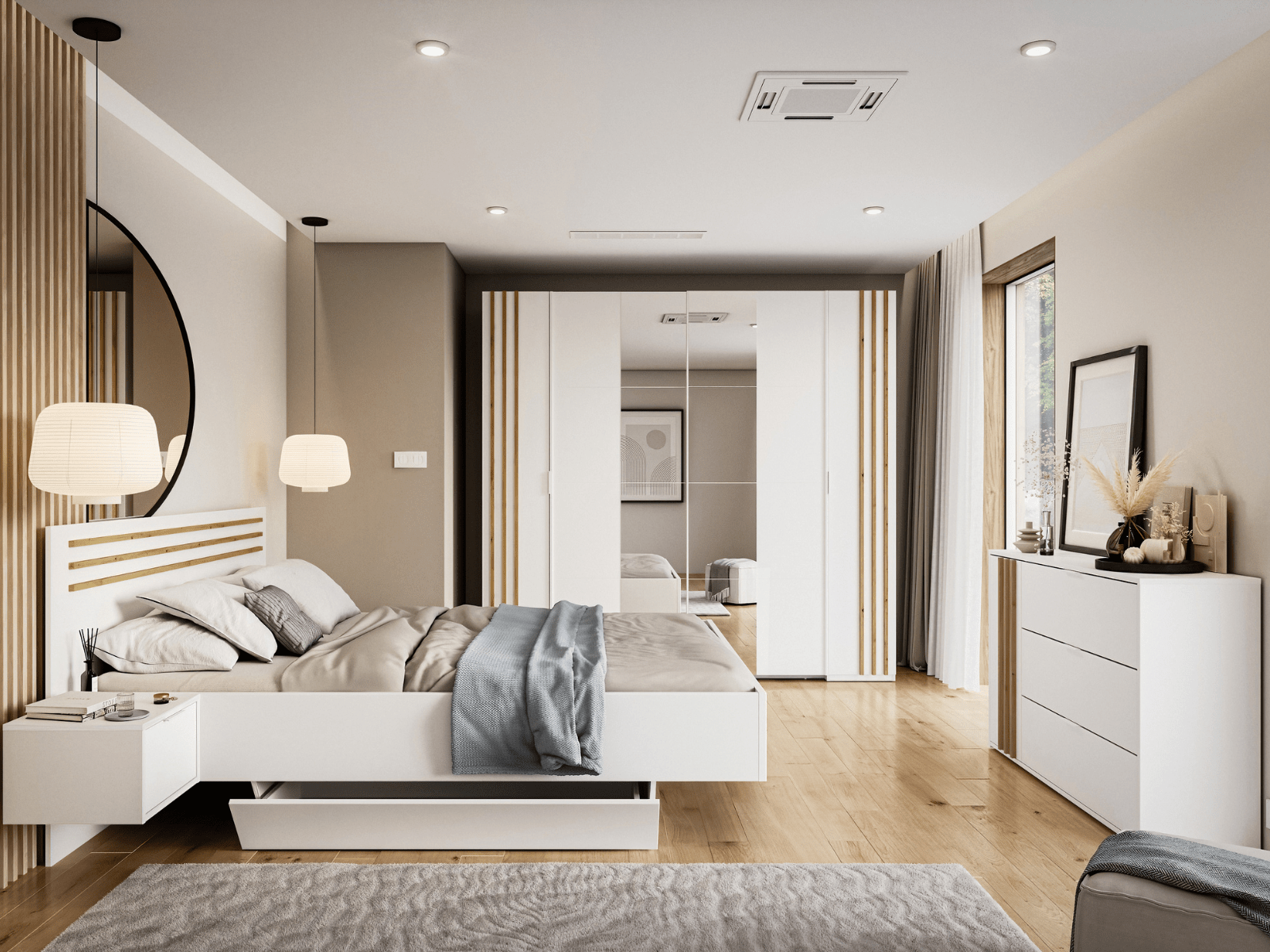 Vous recherchez un lit équipé de chevets flottants ? Le lit FLORACE est fait pour vous ! Il s'intègre parfaitement à tout type d'intérieur, et son coloris blanc, rehaussé d'une touche de chêne artisan, apportera une note moderne, chaleureuse et naturelle. Les chevets flottants vous permettent de ranger divers objets du quotidien, tout en apportant une sensation de légèreté et de modernité. Disponible en deux tailles (160x200 cm et 180x200 cm), ce lit peut être complété par un ensemble de deux tiroirs, offrant un espace de rangement supplémentaire.