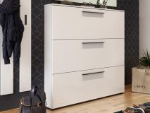 Laissez vous tenter par ce magnifique meuble à chaussure de la collection UTANA! Le design épuré, combiné avec les couleurs claires, crée un ensemble moderne et élégant. Derrière chaque porte, il y a un panier en métal dans lequel vous pouvez ranger vos chaussures. Au total, vous pouvez stocker environ 12 paires de chaussures. Pratique, non ? Les poignées métalliques complètent le tout. La collection UTANA est fabriquée en Allemagne et donc un gage de solidité et de longévité. Nous sommes sûrs que l'armoire à chaussures UTANA rendra votre hall d'entrée encore plus beau et plus pratique!