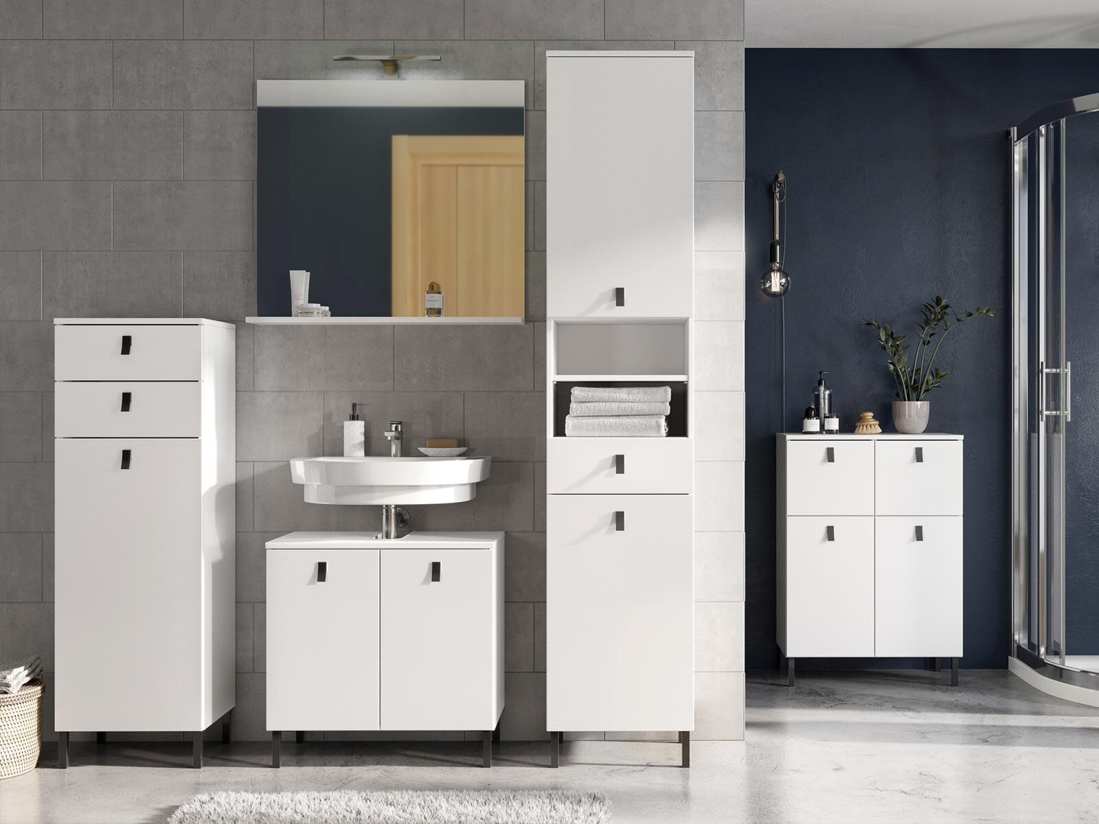Grâce à son style élégant, ce meuble de toilette avec miroir apportera calme et harmonie dans votre salle de bain moderne. Le meuble de toilette TULLY contient 3 portes miroir, une grande porte au milieu et deux petites portes aux extrémités. Derrière chaque porte se trouvent deux étagères en verre réglables, chacune pouvant supporter jusqu'à 1 kg. Ce meuble de toilette avec éclairage est fabriqué en Allemagne et garantit qualité et longévité. Vous êtes à la recherche de meubles de salle de bain assortis ? Alors jetez un coup d'œil à toute la collection TULLY!