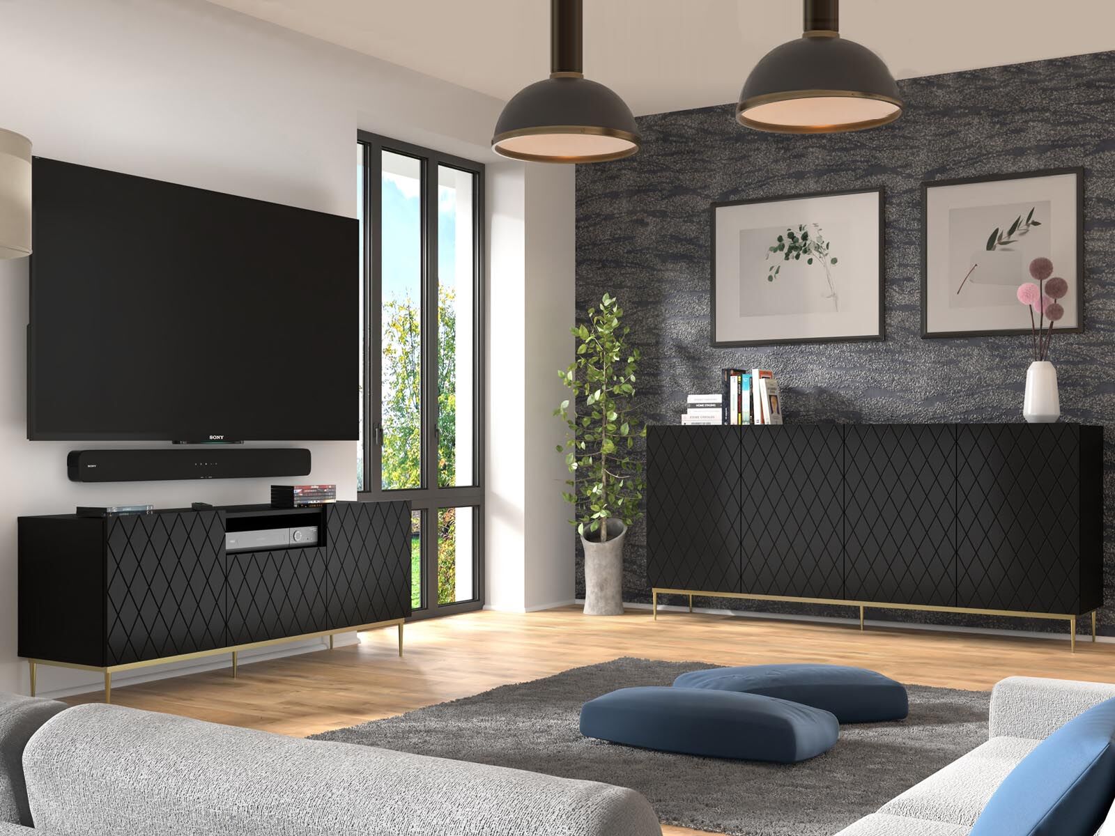 Faites la connaissance de ce chouette meuble tv-hifi DINA au look simple et élégant. Celui-ci s'intègrera parfaitement dans un salon moderne et tendance. Les motifs sur les portes apportent un style agréable supplémentaire.