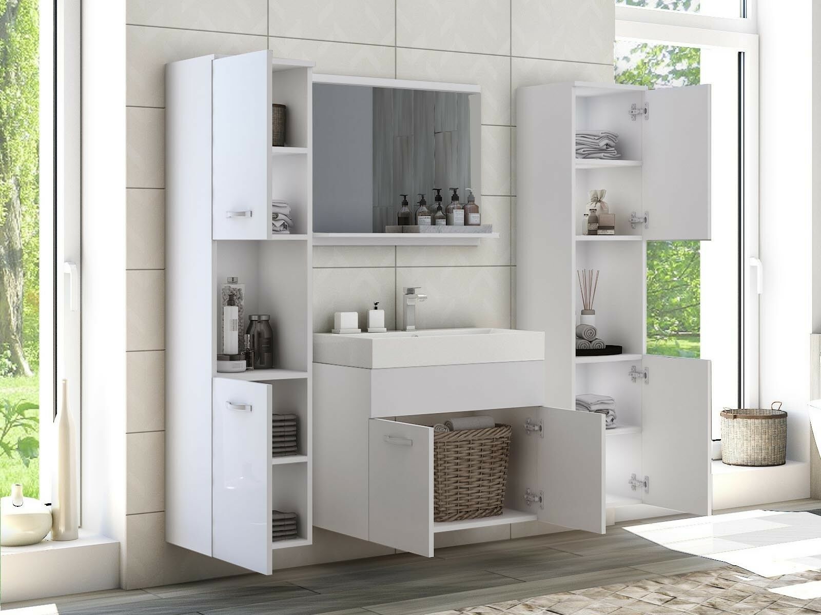 Salle de bain complète MONTELIO 4 portes blanc/gris laqué avec vasque