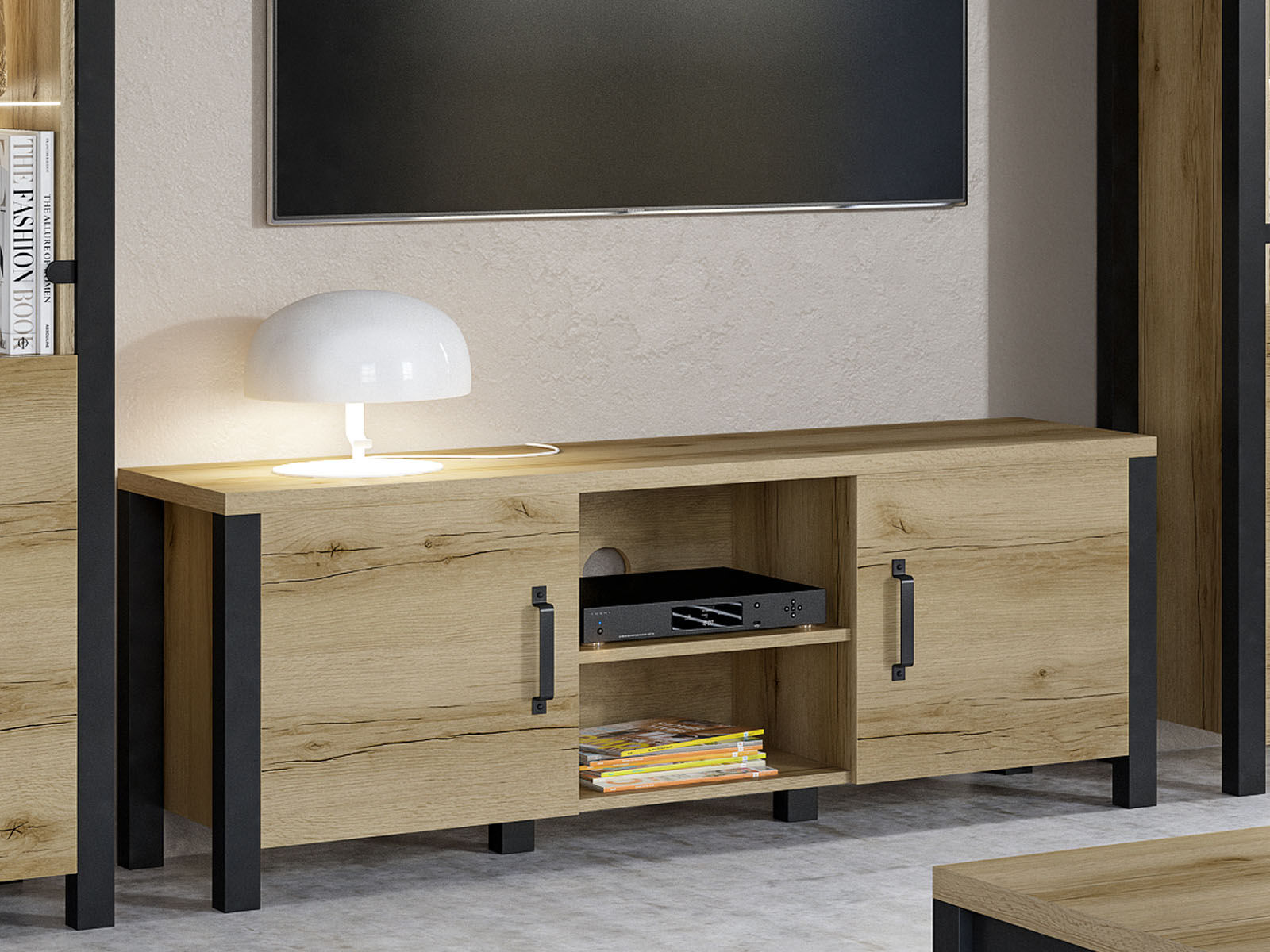 Meuble TV 200 cm industriel : caractère et capacité de rangement