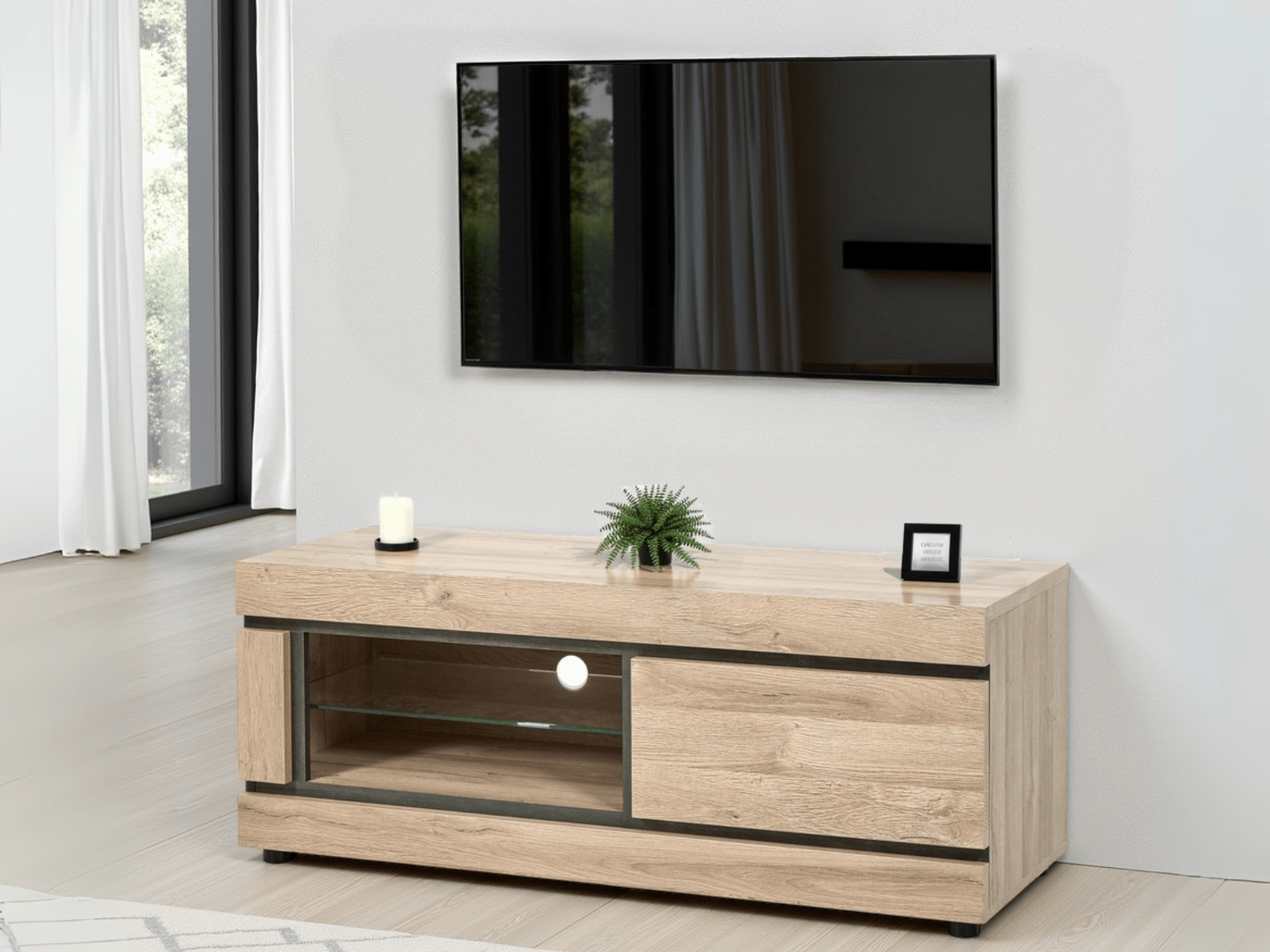 Du petit salon au grand séjour, nous proposons des meubles TV dans différentes tailles : 100 cm, 120 cm, 140 cm, 180 cm ou 200 cm. Il est essentiel de choisir une dimension adaptée à la taille de votre téléviseur, mais aussi à l’espace disponible. Nos meubles sont pensés pour optimiser chaque centimètre, quel que soit leur format.