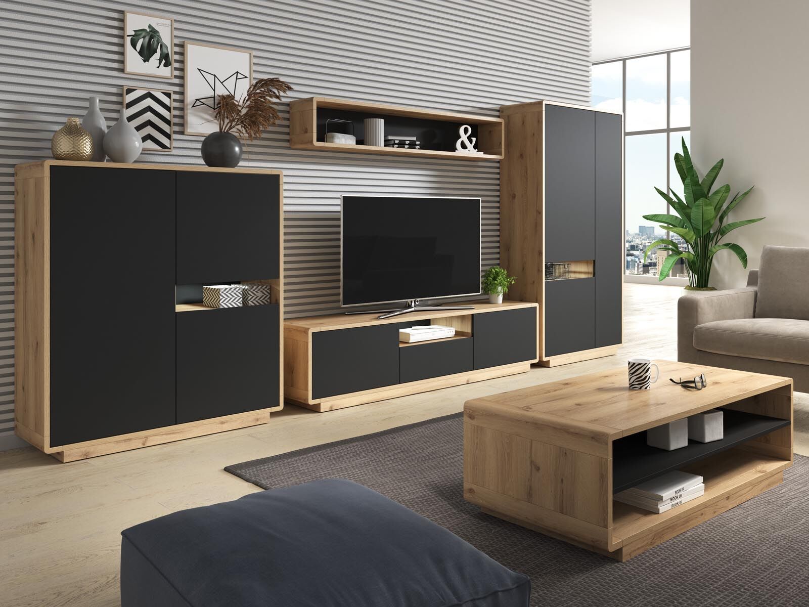 Table basse ASTER 120 cm noir mat/chêne taurus