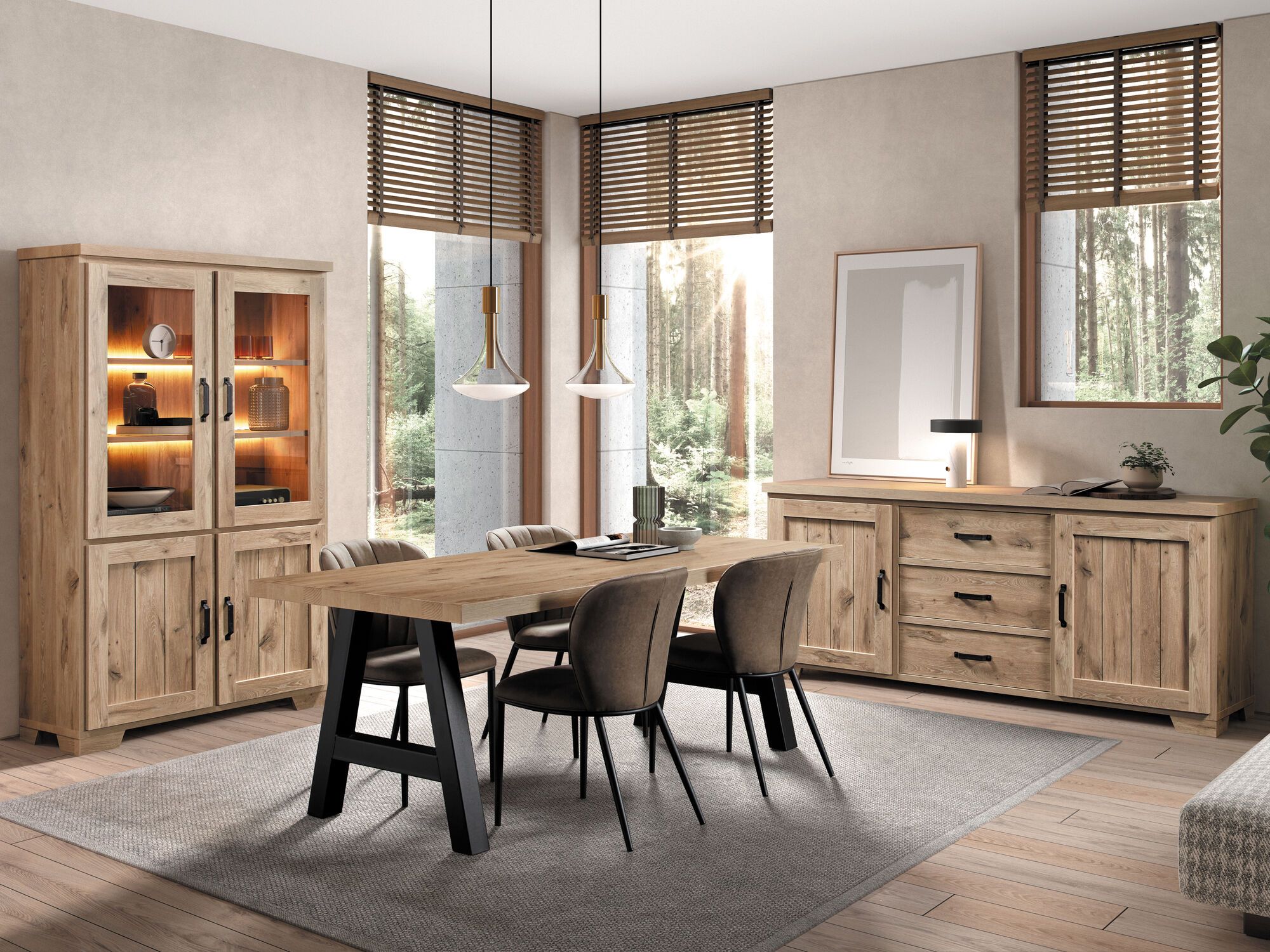 Donnez une nouvelle vie à votre salon grâce à cette table repas de la collection SYROCO qui apportera chaleur et convivialité dans n'importe quelle pièce. Son côté rustique combiné à un style tendance lui donne un aspect chaleureux!