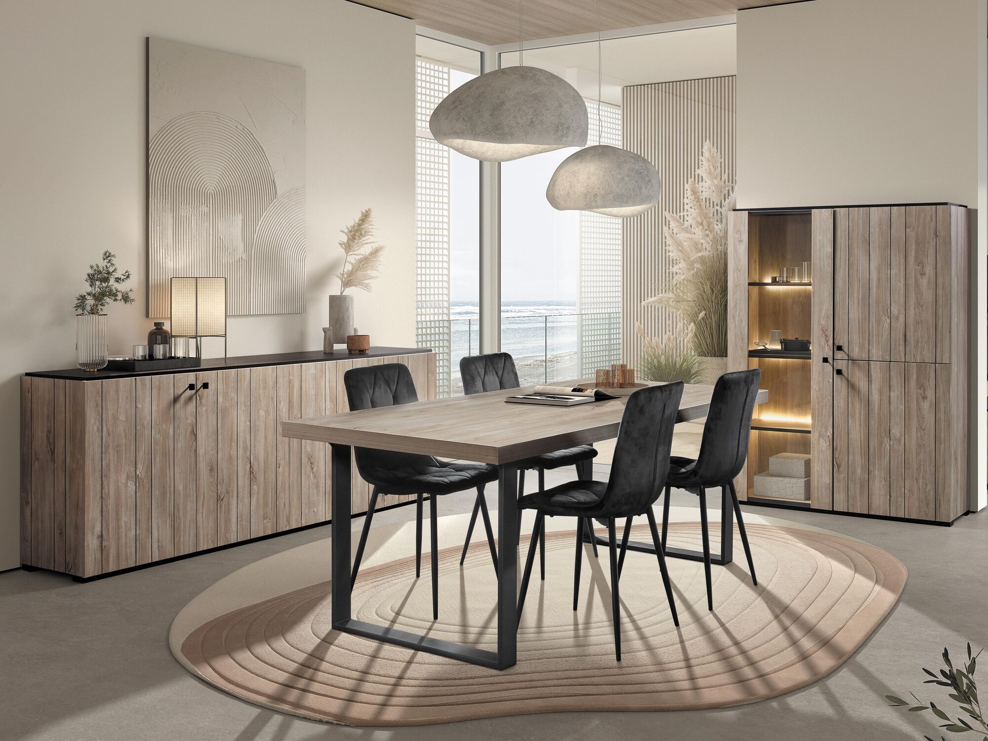 Ne cherchez plus ! Cette remarquable table repas, mariage parfait entre modernité et style industriel, a tout pour vous séduire. Ses pieds en métal noir assurent une stabilité inébranlable tout en apportant une touche contemporaine à votre salle à manger.